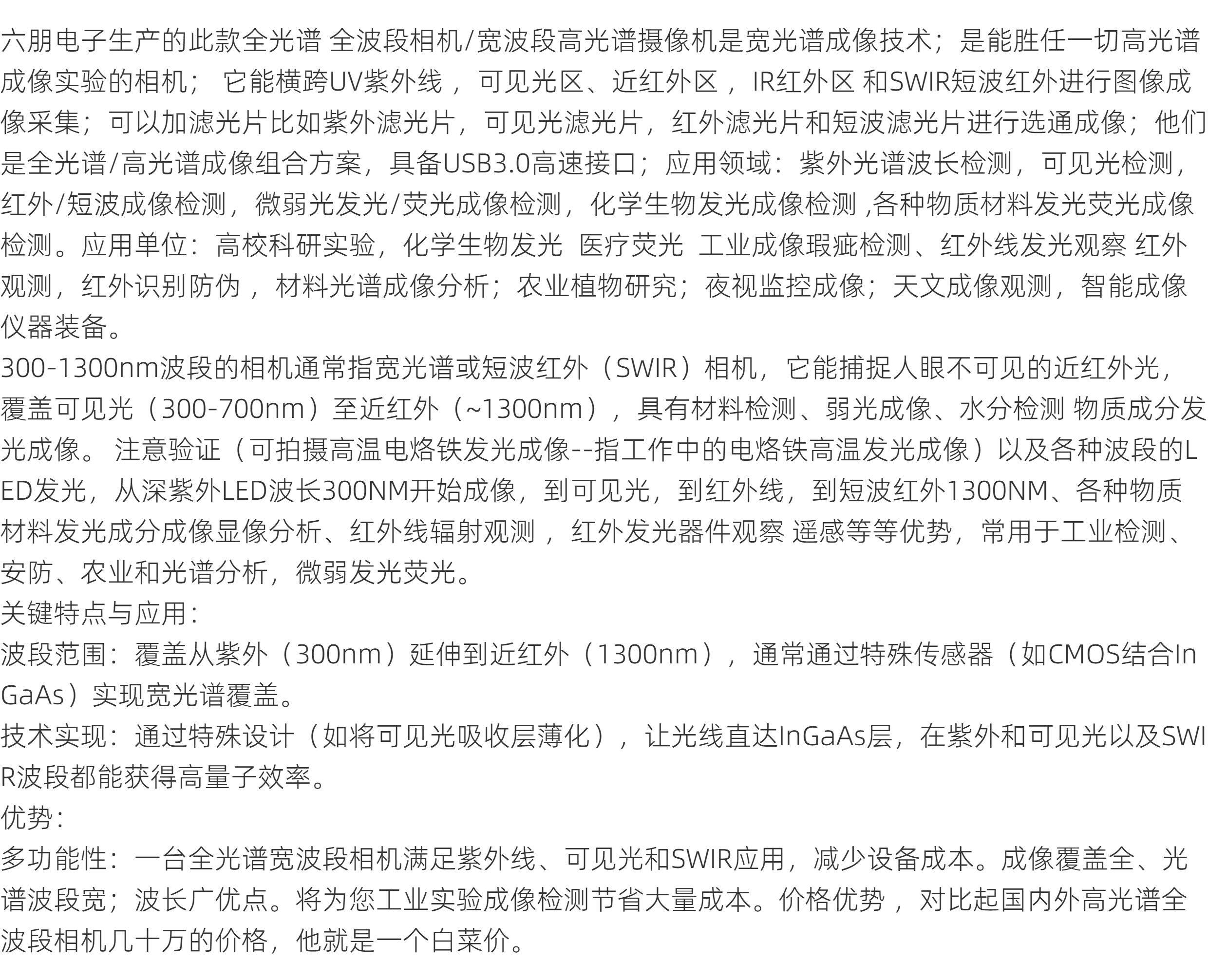 >> 300NM-1300NM全光谱相机 宽光谱摄像机 紫外线可见光红外检测成像